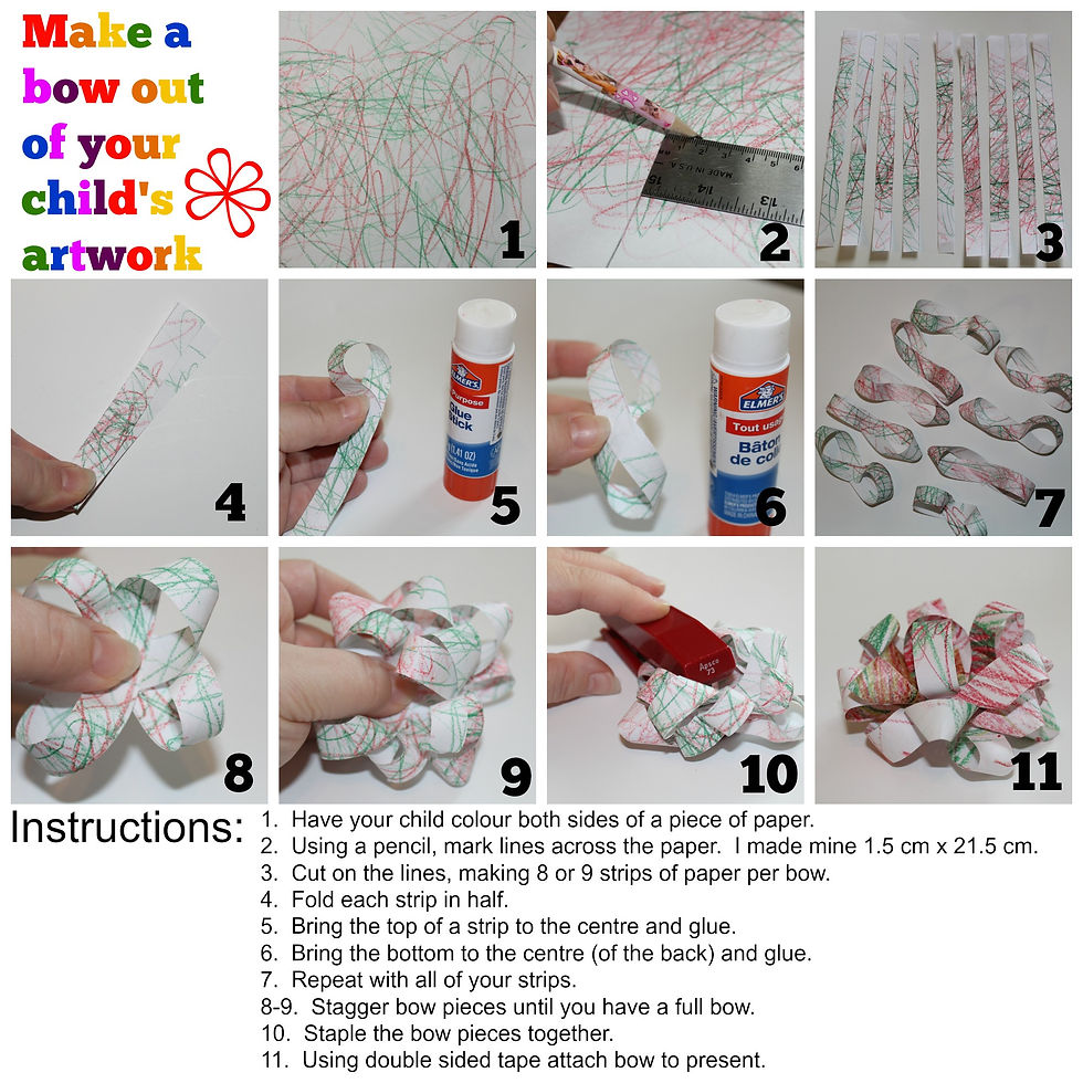 The children have just finished making their gifts for their parents. They did an amazing job on them. I am so excited, I can't hardly wait for them to give them to them. Yesterday they coloured their bows and today they made their wrapping paper. The children put so much love into everything they make and do. If you wish to help your child make bows for the special people in your lives, just follow the pictures above. They are the perfect addition to a season filled with love.